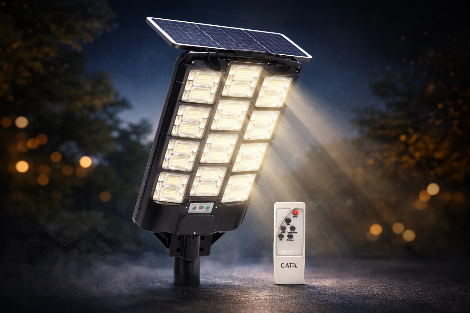 1200 W gücündeki SUPERNOVA solar lamba, çok büyük alanlar için tasarlanmış üstün bir aydınlatma çözümüdür. Güneş enerjisiyle çevre dostu bir kullanım sunar.