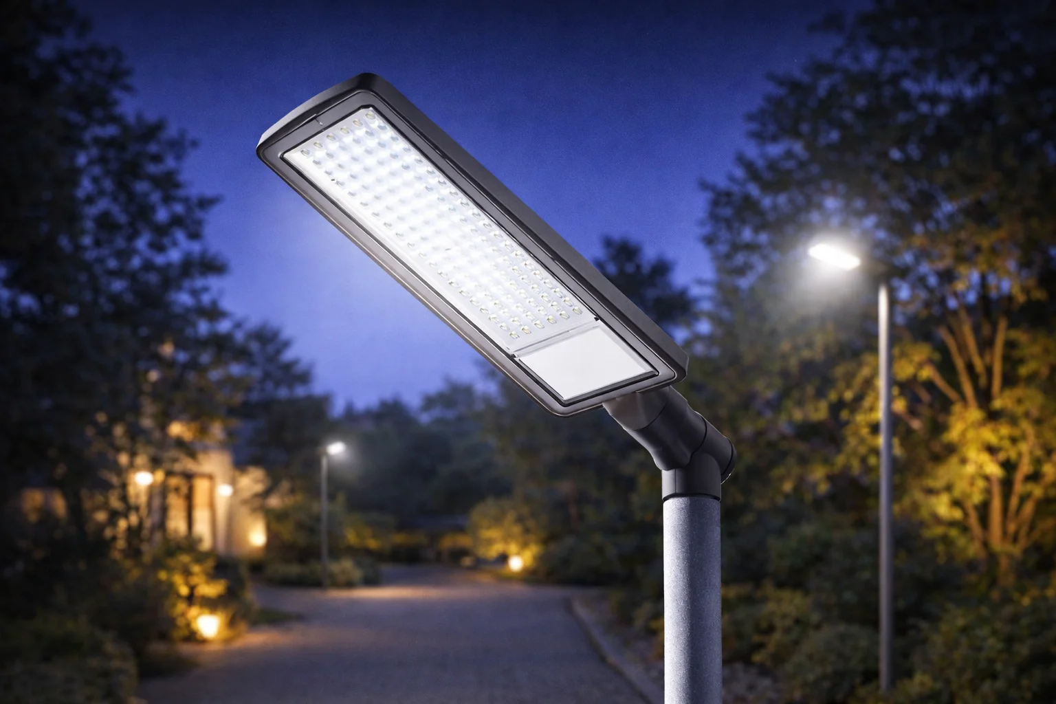 150 W gücündeki bu PLATINUM sınıfı sokak lambası, geniş alanlar için güçlü ve homojen bir aydınlatma sunar. IP64 koruma sınıfıyla dayanıklıdır.